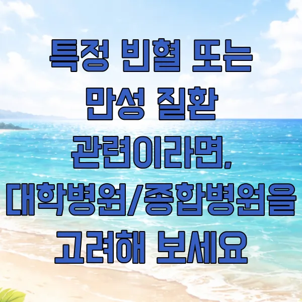 만약 특정 유형의 빈혈이 의심되거나, 빈혈과 함께 다른 복합적인 건강 문제 가 있다면 대학병원이나 종합병원에 방문하는 것이 현명할 수 있어요. 이곳에는 각 분야별 전문의들이 모여 있어 더욱 심층적인 진단과 치료 계획 수립 이 가능하답니다.